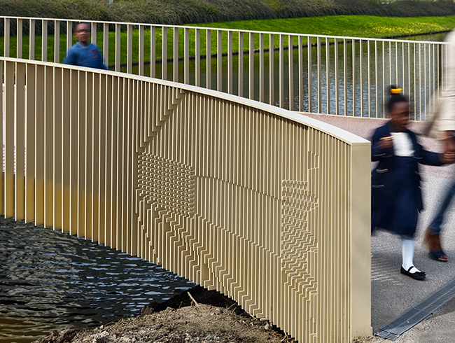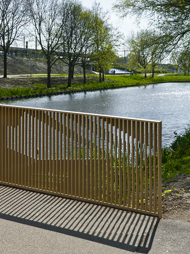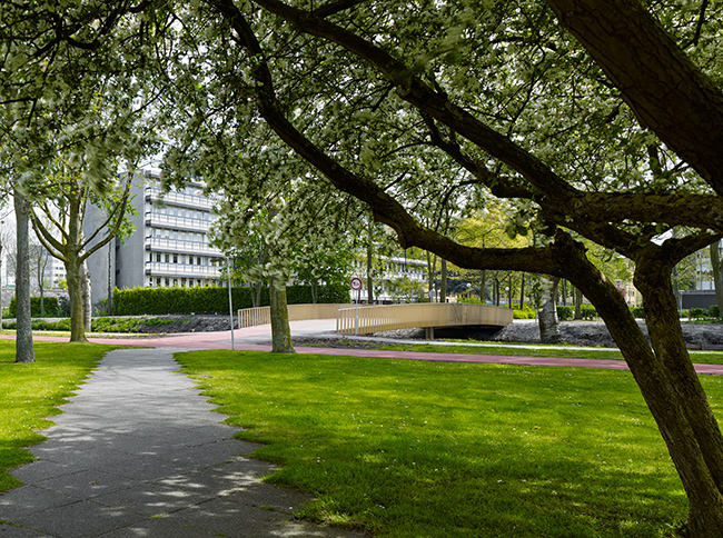 Ter vervanging van twee houten bruggen in de Amsterdamse Bijlmer schreef de gemeente Amsterdam en Stadsdeel Zuidoost een wedstrijd uit onder architectenbureaus. Het ontwerp van Korth Tielens Architecten won die wedstrijd. Er werd gekozen voor FiberCore composiet bruggen met InfraCore® Inside technology vanwege de vormvrijheid en het duurzame karakter van het materiaal. Het architectenbureau noemde de brug zelf een Bijlmerbeauty. Deze verzonnen term voert terug op de brugleuningen, waarin een deel van de geschiedenis van de Bijlmermeer verwerkt is. Bij een specifieke benadering van de brug zijn weergaven van Bijlmerbeelden in te leuningen terug te zien.
