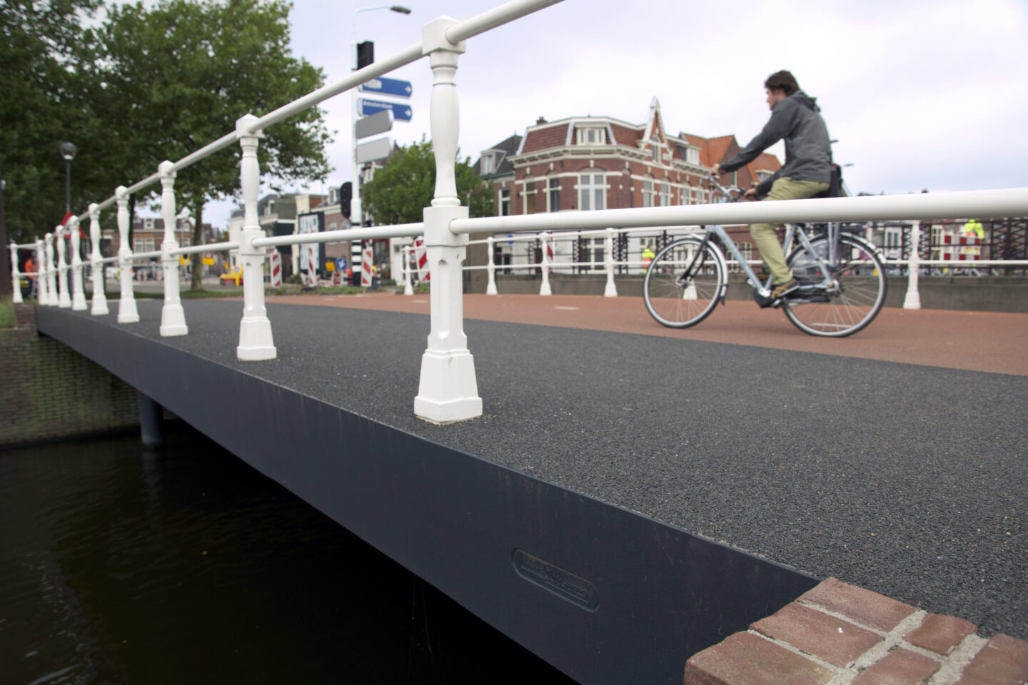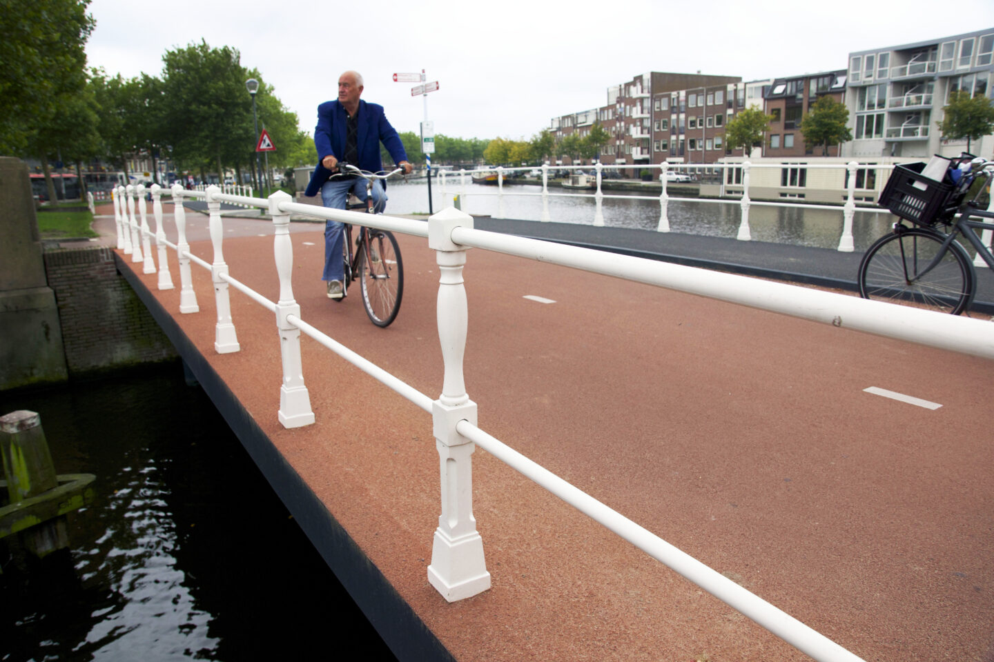 De Zuiderfietsbrug heeft een trapeziumvorm, maar is desalniettemin geprefabriceerd en uit twee delen op slimme wijze samengesteld.