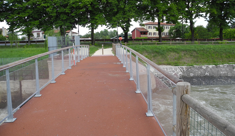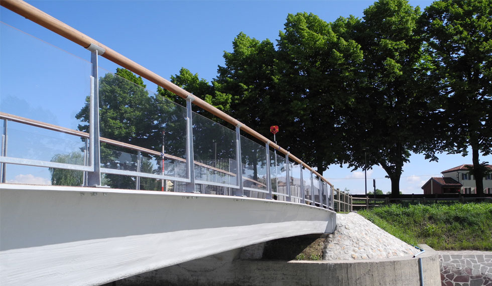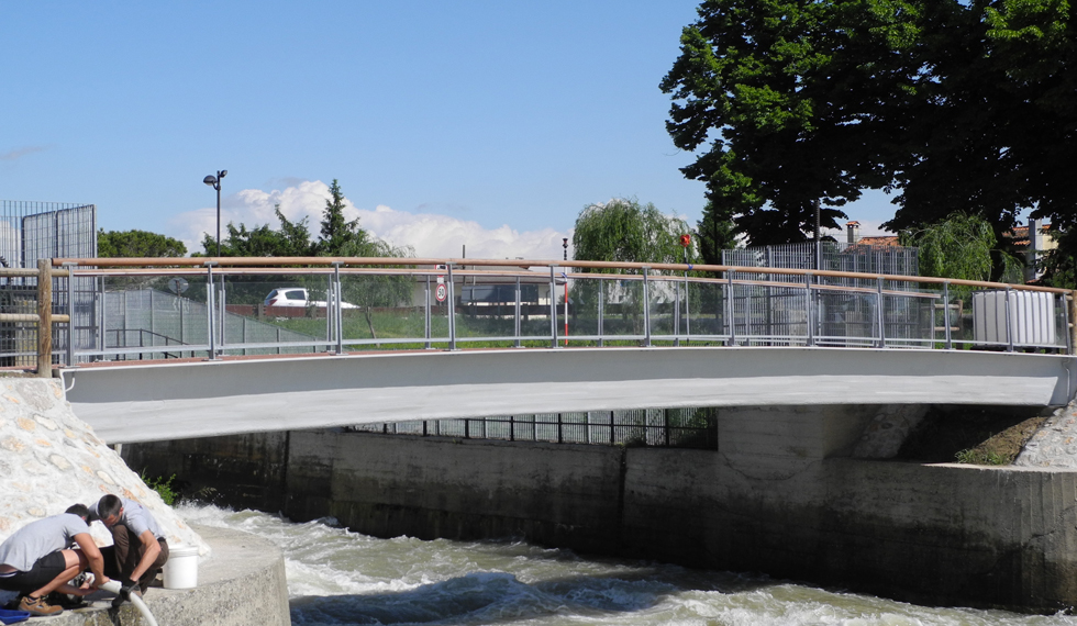 The 17.5m long bridge is installed in the Comune S. Stino di Livenza, a country town northeast of Venice. The bridge will be used by pedestrian and bicycle traffic. It is probably the first all-FRP bridge in Italy.