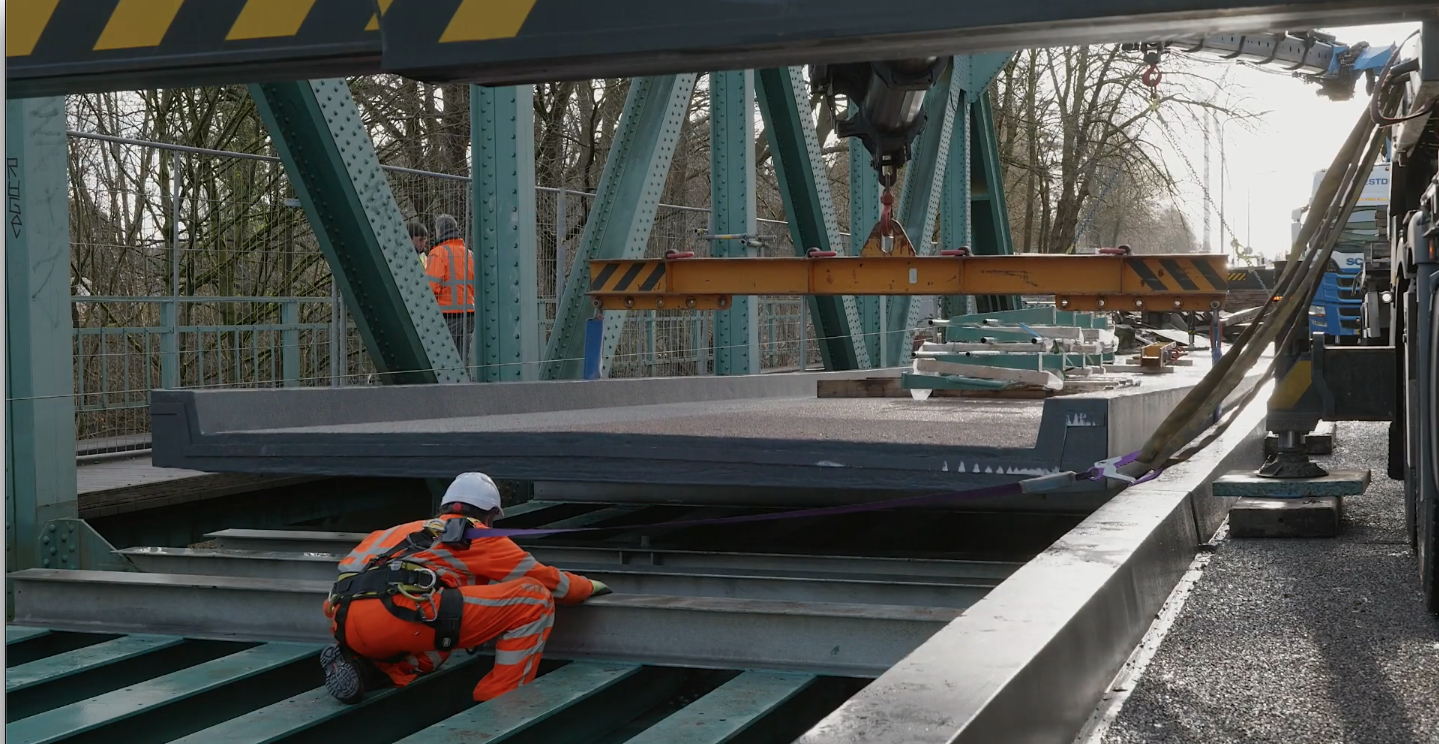 Voor de Gemeente Kerkrade renoveerde FiberCore Europe de historische brug over de Miljoenenlijn in Kerkrade, met behoud van de beeldkwaliteit. Door het lichte gewicht van de prefab composiet dekken met InfraCore® Inside konden deze eenvoudig, met behulp van slechts de vrachtwagen van Westdijk Transport, geplaatst worden. Snel én met minimale hinder voor de omgeving. Door het onderhoudsvrije karakter van de dekken heeft de Gemeente er na de oplevering geen omkijken meer naar. Ook de onderliggende stalen constructie is beter beschermd tegen de elementen door de homogene constructie van de 53 meter lange prefab dekken.