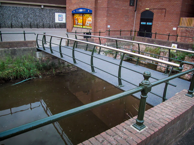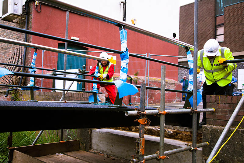 This is believed to be one of the first moulded FRP composite footbridge decks in the UK. The bridge was delivered to site in one piece complete with surfacing and handrails and was lifted into position in under an hour. After installation Lifespan Structuresremoved the adjacent timber bridge and completed the surfacing and hand railing on each embankment. The work was completed in June 2013.