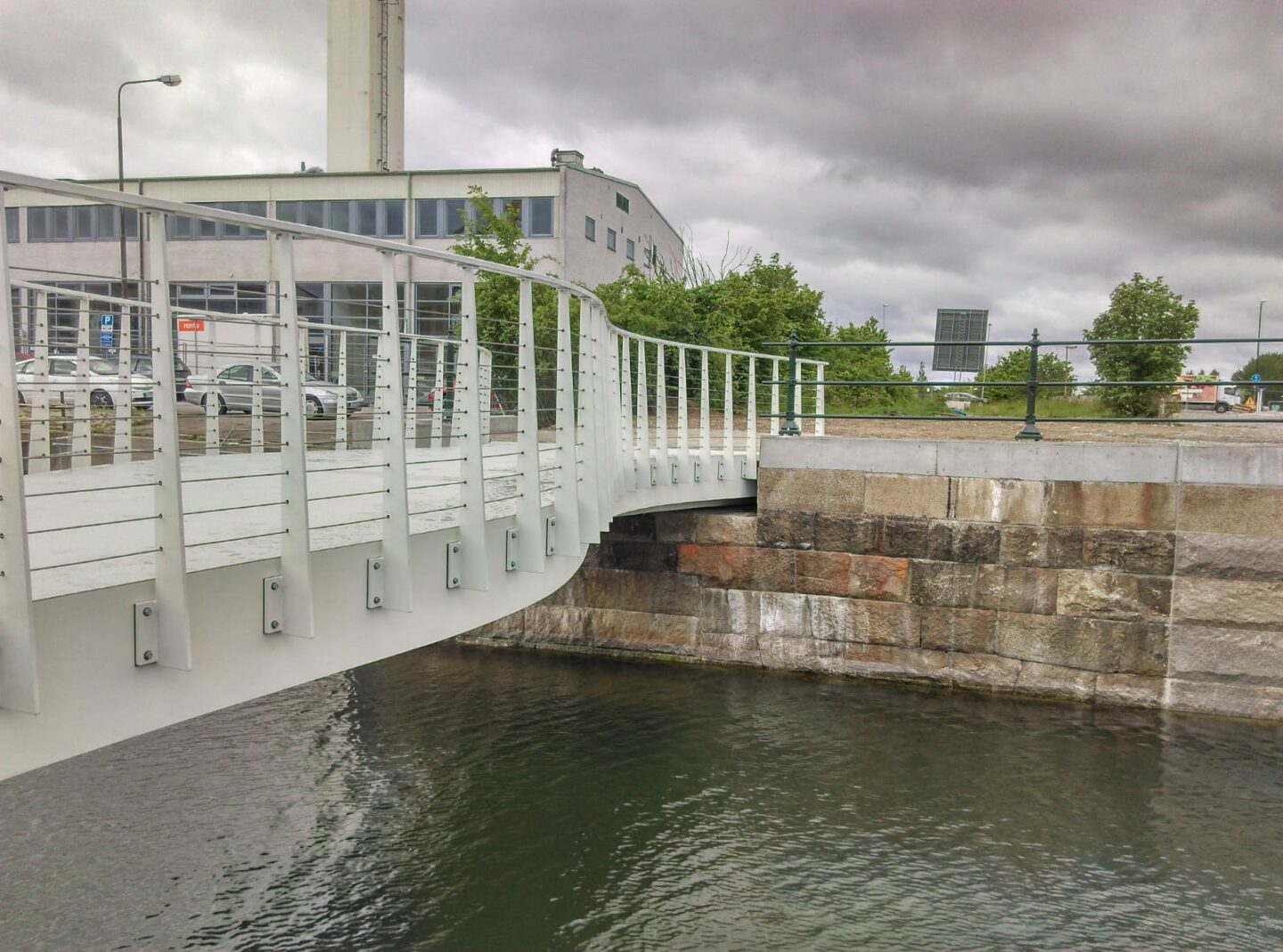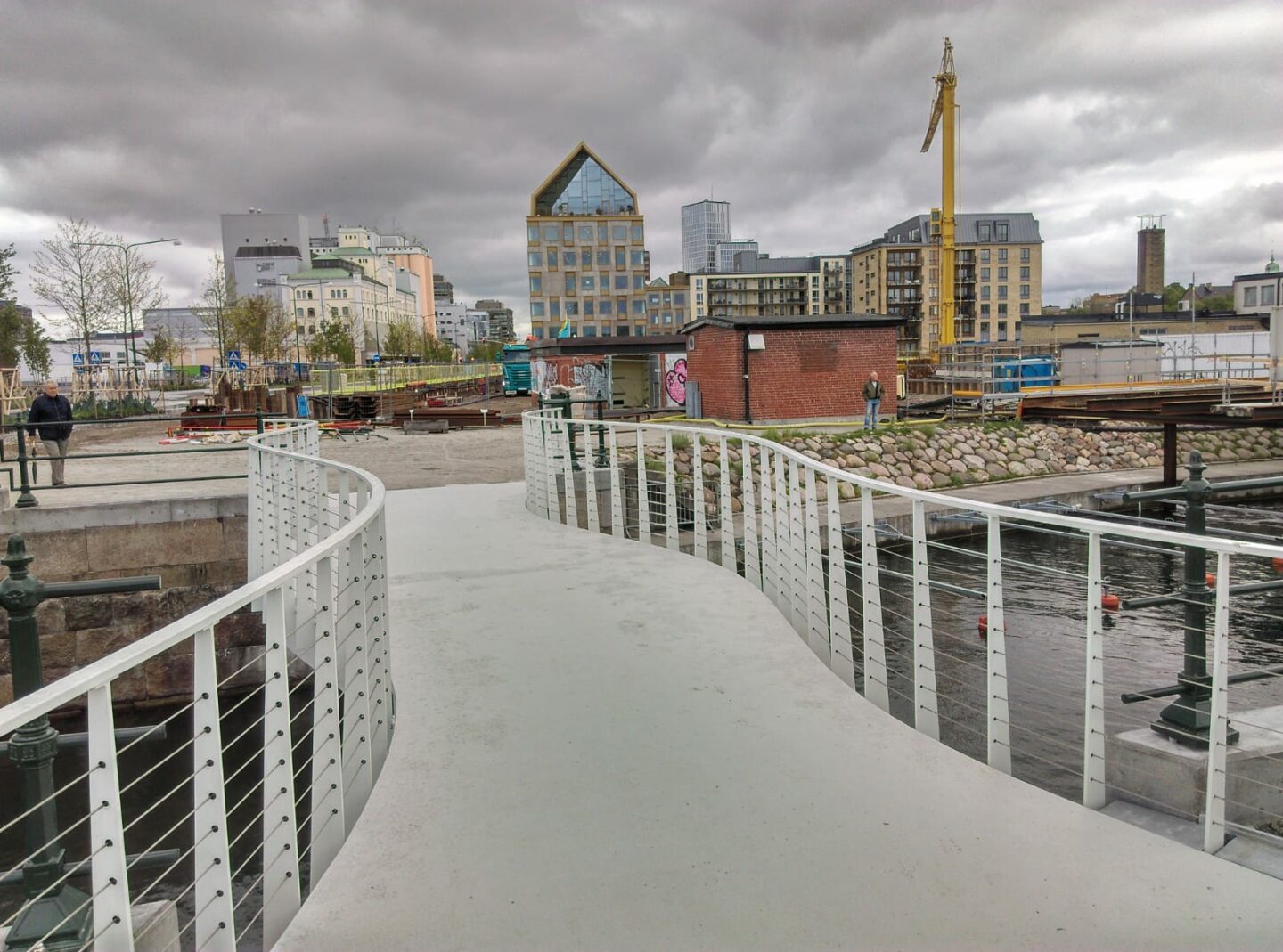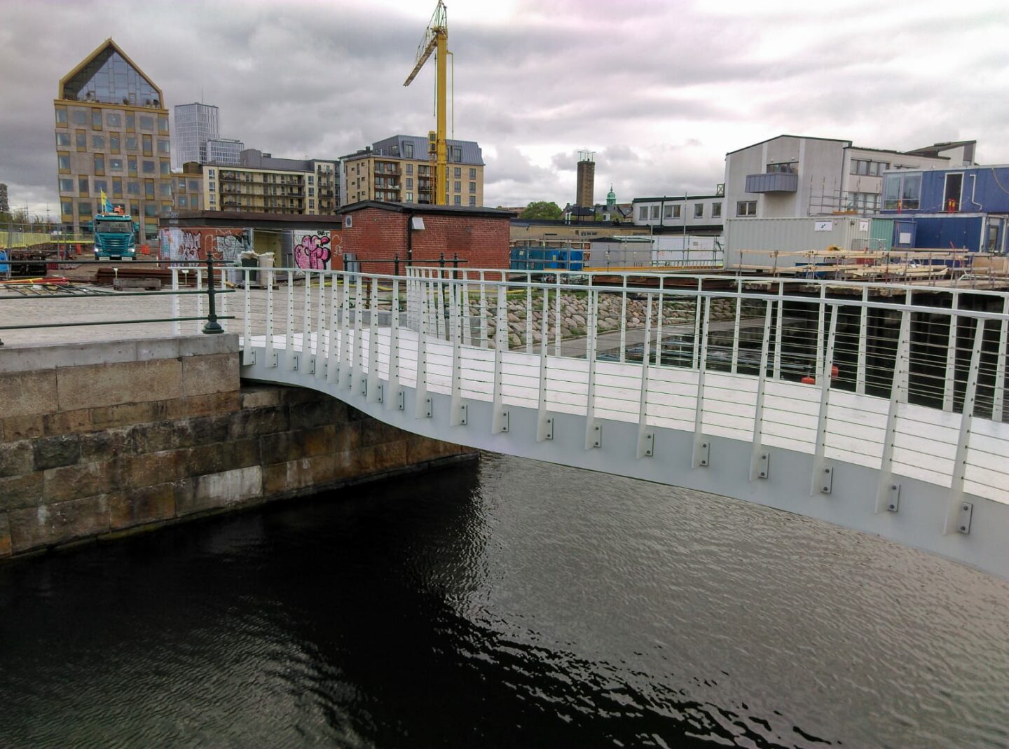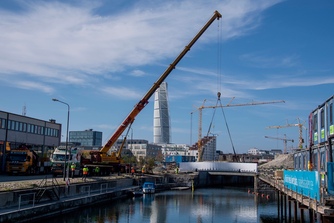 Door haar lichte gewicht werd de prefab brug met minimale hinder voor de omgeving in no-time geplaatst op de historische kademuren van Malmö.