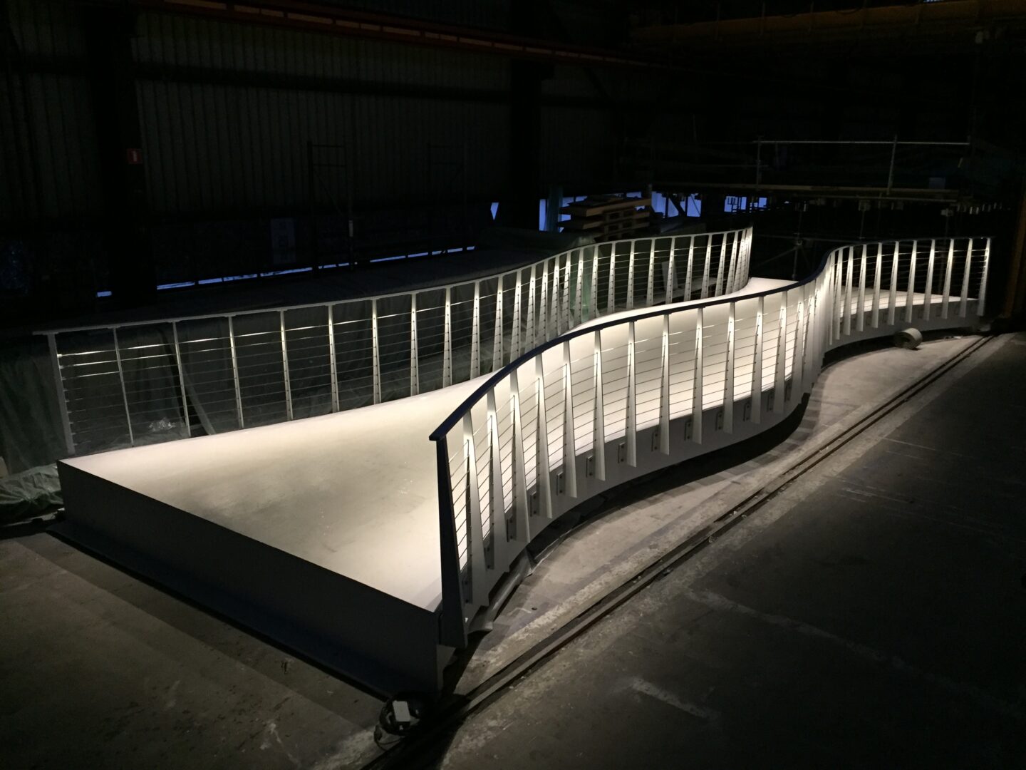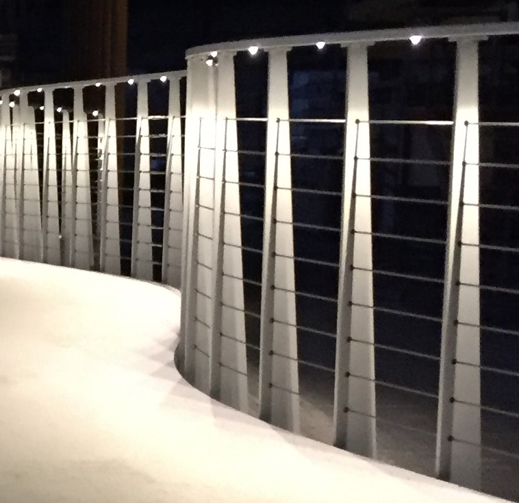 Overdag ligt ze er al prachtig bij, met haar sierlijke slanke vormen en bijzondere witte brugdek, maar wil je haar in volle glorie aanschouwen; bezoek haar dan als het donker wordt. Met haar elegant verlichtte leuningen is ze op haar mooist.