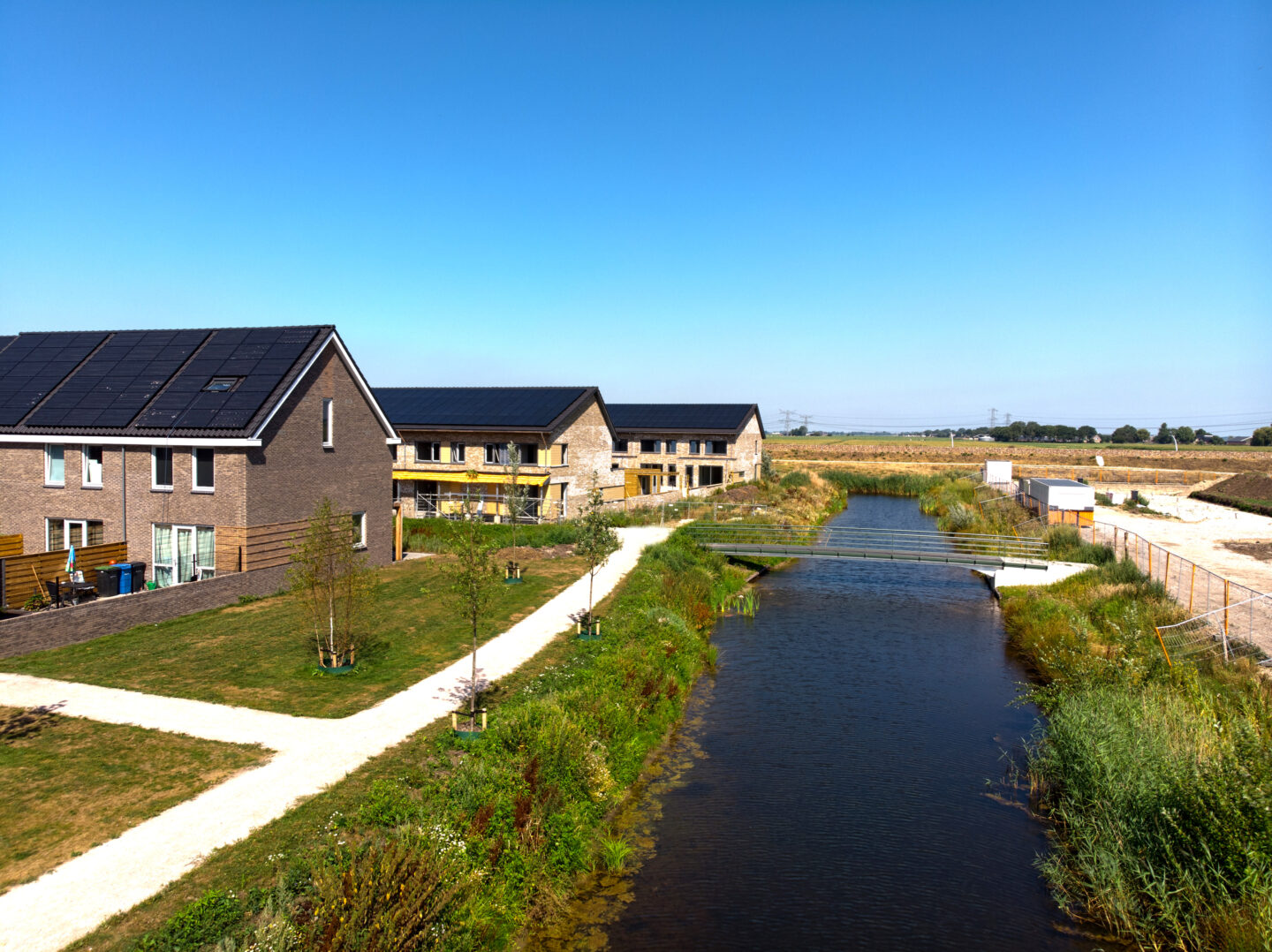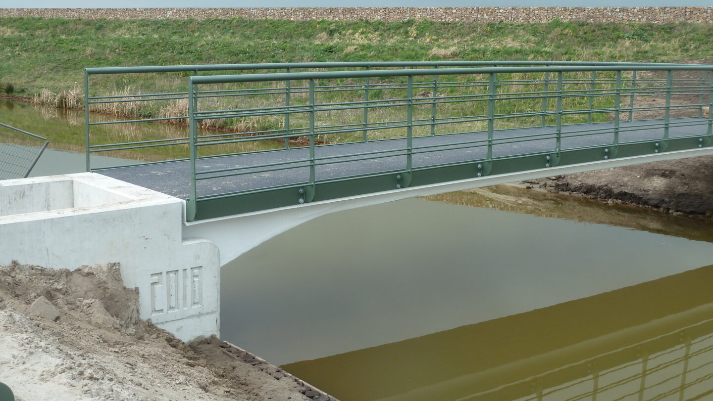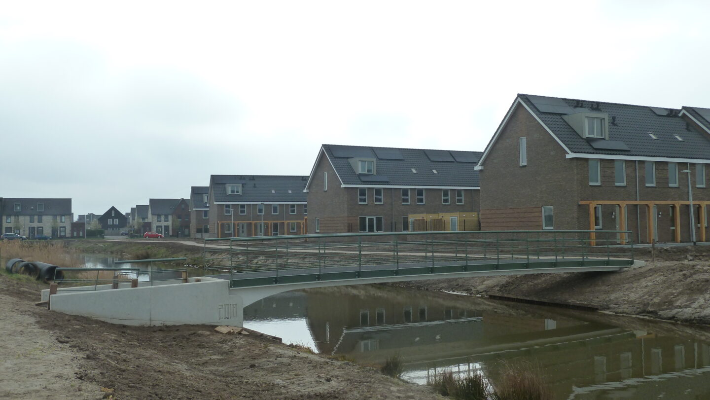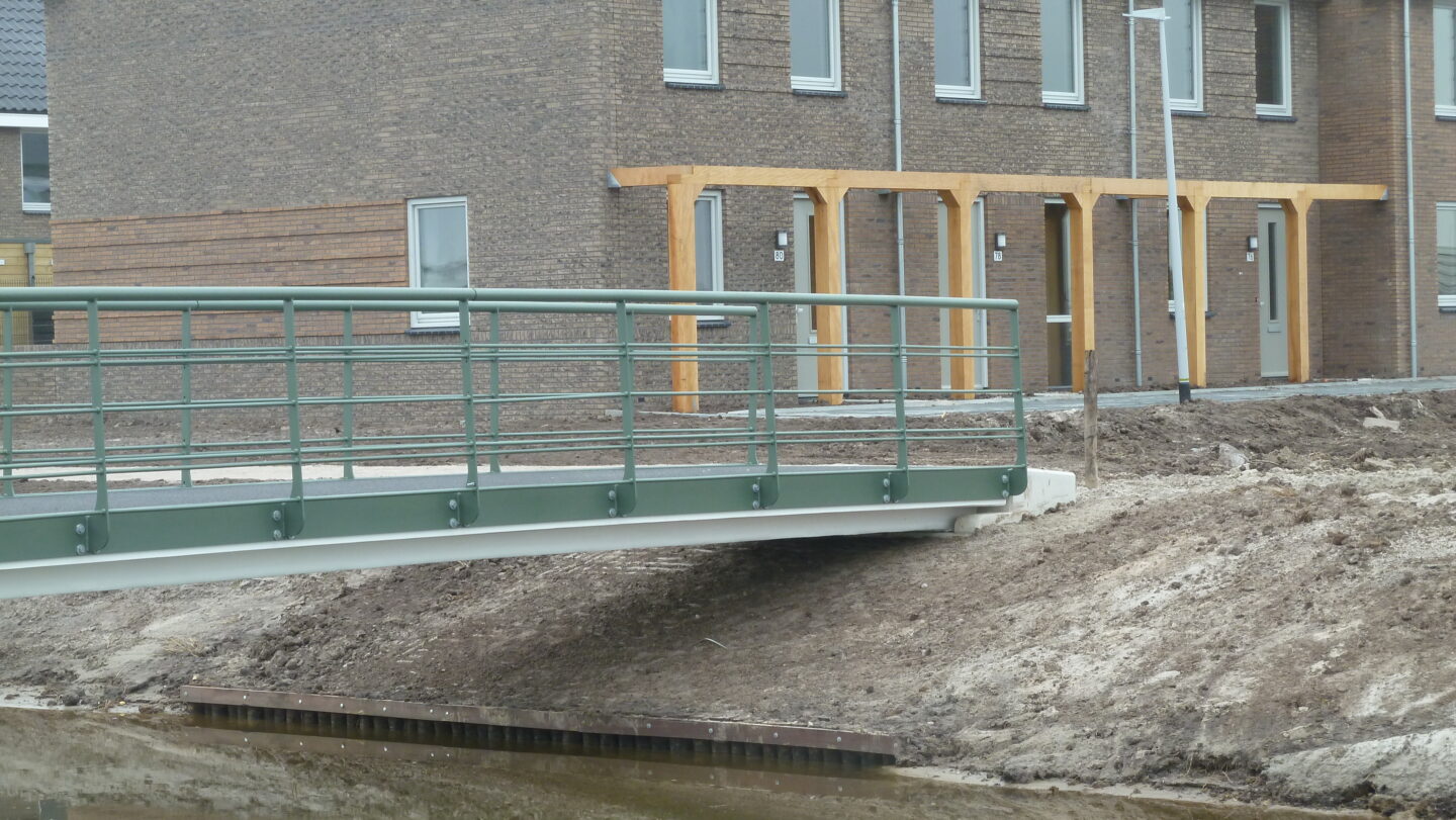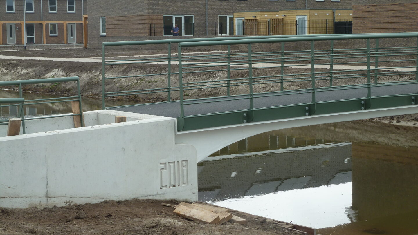 H. van Haarst B.V. plaatste deze prachtige composiet fiets/voetgangersbruggen in de nieuwbouwwijk Breecamp in Gemeente Zwolle. Een primeur: dit zijn de eerste volledig composiet bruggen geplaatst in deze gemeente. De bruggen werden ontworpen door buro MA.AN en doen door het ontwerp van de fundering en de leuningen met een speciale metaal-look coating denken aan de Art Deco periode, wat heel mooi past binnen de woonwijk. Door de vormvrijheid van composiet konden deze afwijkende vorm bruggen toch aan een stuk worden gemaakt. Deze duurzame bruggen zijn laag in gewicht (weinig grondstoffen benodigd), nagenoeg onderhoudsvrij en hebben een levensduur van meer dan 100 jaar.